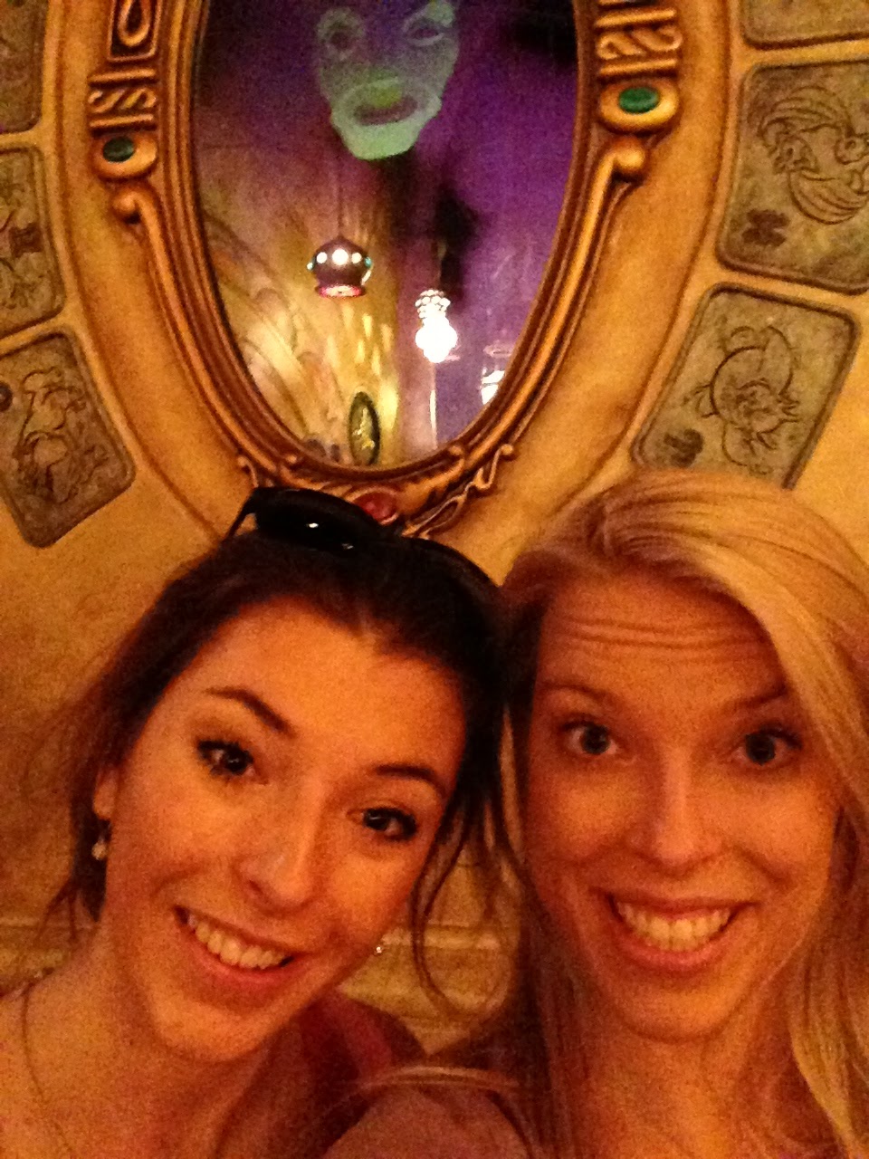 We had an hour to go until our FastPasses for The Tower of Terror became valid, so we went into the Art of Animation building to check it out. It was so cool! We hadn't realized before, but there were all these awesome interactive things to do - like finding out what character you're most like, or acting/singing a part of a movie and hearing your voice blended with the character's in the clip - and a huge room with screens everywhere projecting images and clips from songs in all the Disney classics. We spent ages just sitting and watching the highlights, rediscovering some childhood favourites. Also, we saw the magic mirror from Snow White! Pretty cool...